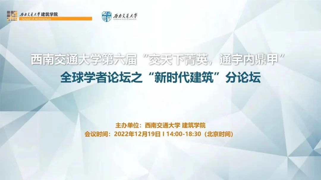 第六届“交天下菁英,通宇内鼎甲”全球学者论坛之“新时代建筑”分论坛线上成功举办。本次论坛邀请了8位海内外优秀青年学者发表精彩的学术报告。蘑菇视频