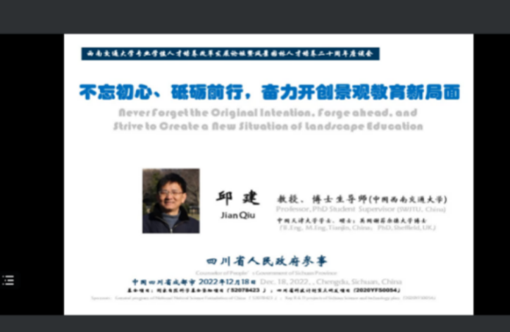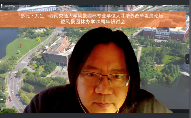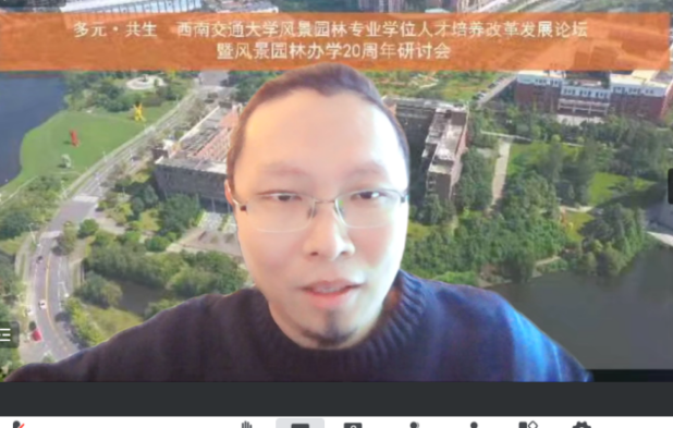 邱建教授,中国建筑西南设计研究院有限公司总建筑师刘艺和美国SWAGroup集团首席设计师郑潇女士。专家们的精彩报告为百年未有之大变局时期的风景园林专业发展及人才培养方向提供了深度的思考与启发。