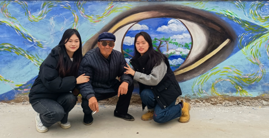在村党支部的大力支持下,同学们克服寒冷、下雨等各种问题。从构图起形、调色到涂色,相互合作、配合默契,每一幅画都倾注同学们的心血。经过他们细致的涂绘,单调的白墙变得画面饱满,立体丰富,雅韵翩然,吸引当地居民驻足观看,小朋友们也前来和创作中的哥哥姐姐们一起学习和观赏。