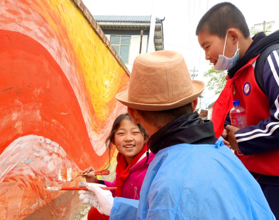 村里的孩子们在师生们的创作过程中欢乐地参与,开启了他(她)们对美的启迪