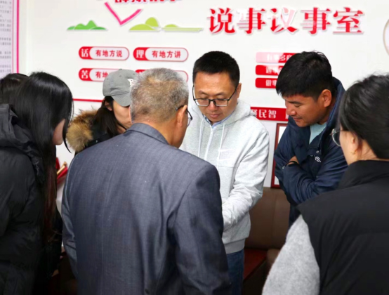 图:乡村振兴团队成员下乡在村委会交流