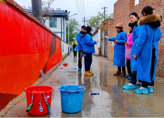 一村一景、一墙一文化,甘肃省天水市秦安县秦洼村的“美丽乡村壁画”让原本老旧、空白的墙壁变得色彩斑斓,成为乡村一道靓丽的风景线。四月的甘肃秦安,细雨蒙蒙,虽气温骤降,但秦洼村里却热气腾腾,显得格外温暖。来自北京科技大学的驻村第一书记在我们创作过程中为我们准备了许多工具,并带领我们参观村庄,热情的提供了许多帮助。在每天早上进村时,就能发现村长已早早的为我们烧起了火炉,一进屋便能感受到温暖。绘画过程中村民们的各种关心,也让我们感受到了浓浓的温情。
