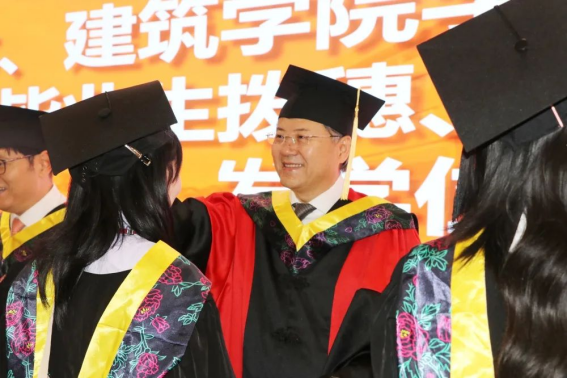 执行院长沈中伟教授致辞中指出毕业典礼和学位授仪式是每一位在校的毕业生人生中最难忘的时刻,这一刻即将开启自己的事业人生。沈院长还在致辞中嘱托毕业生们四点希望:一是要学会两眼“发光”,学会用积极的态度看待一切。要树立正确的人生观、事业观,价值观,要以积极的心态投入到社会中。要以学院多年培养所形成的修养、礼仪、能力积极对待世界,解决问题,必须良好的心态面对任何困难。二是要仰望星空,在每一个时间节点上,都应该给自己目标,没有理想人就会消极,在理想与追求之下,我们永远会有积极的态度去开创未来。三是要脚踏实地,要做到言行一致,笃行致远。我们为什么学习建筑构造,我们为什么要有建造节,就是同学们把自己的理想所学的理论投入到实践,理论结合实际,尽精微,方能致广大。四是一定要品行端正,要做到问心无愧,人生是漫长的,在未来工作的30-40年。我们不能有半点虚假,不能投机取巧,也不能华而不实。所以,品行端正是成就人生最重要的一个法宝。最后就是在利益面前要有大局,在困难面前要有担当,在矛盾面前要有胸怀,这也是我的人生观。希望我们在座的同学们能够成为一名优秀的蘑菇视频