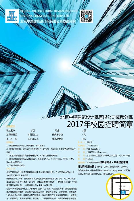 【就业】北京中建建筑设计院有限公司成都分院2017校园招聘