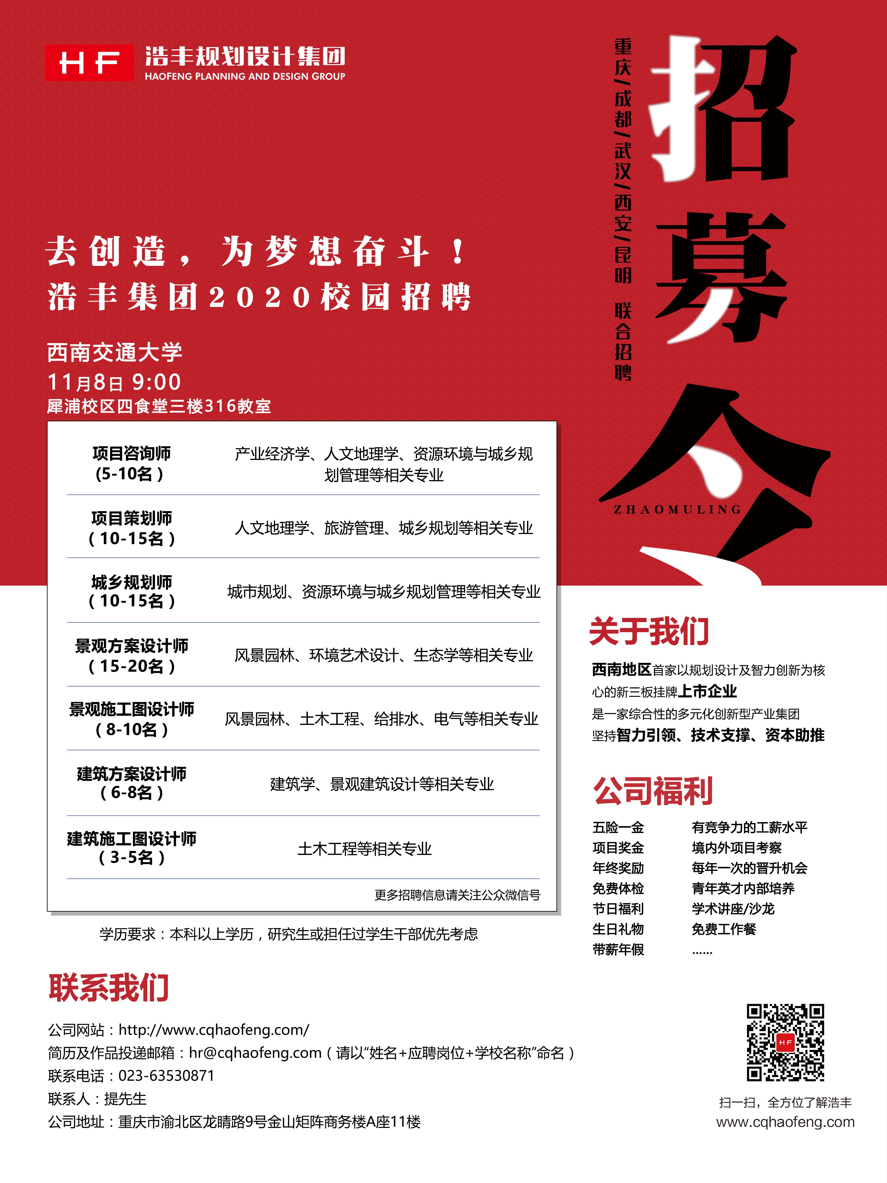 【招聘信息】浩丰规划设计集团​2020校园招聘需求信息