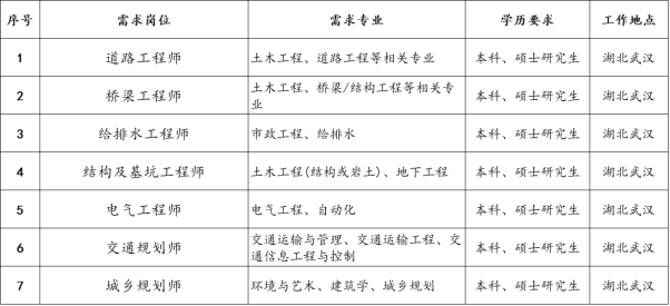 中交城建院2021校招职位表