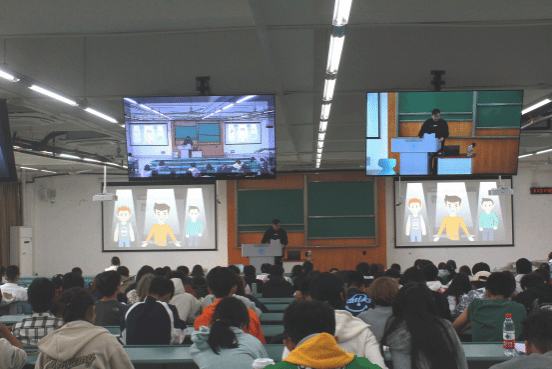 曾轲老师要求全体在座同学注册蓉城反诈卫士。曾轲老师从治安安全和反诈安全两大方面阐释了校园安全问题的复杂和严重。在治安安全上,曾轲老师从人身安全和财产安全展开讲述。在反诈安全上,曾轲老师从常见学生涉案案例、常见学生被骗案例和境外打击的困难性展开说明。曾轲老师最后进行了禁毒宣传和校园防艾的工作。