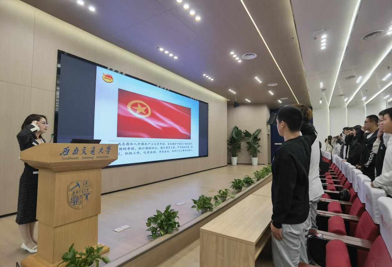 首先,孔书记欢迎同学们来到我们温暖的学校大家庭,开启新学期的学习逐梦旅程,接着,全体成员一起奏唱《光荣啊,中国共青团》。随后,由孔书记宣读《团团致四川学子的一封信》,欢迎同学们来到四川学习,也希望同学们不忘初心,青春朝气永在,志在千秋,百年仍是少年!随后,孔书记带领同学们观看了庆祝中国共产党成立100周年大会上共青团员和少先队员代表集体献词——“请党放心,强国有我”视频。