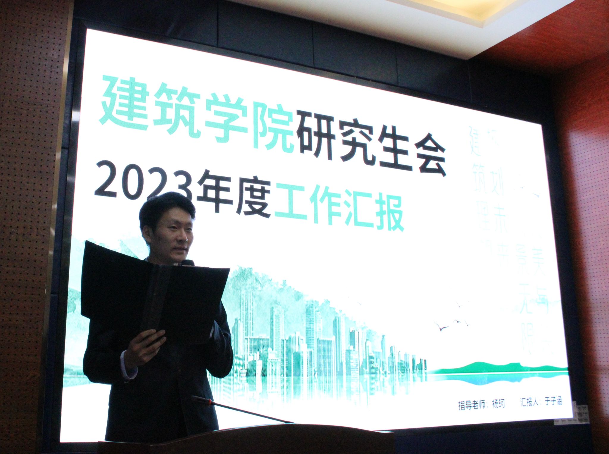 研究生会2023年的工作情况展开回顾。思想引领方面,通过思政学习、思想建设、作风培训、党团联建等方式,累计开展活动共十余项。制度建设方面,严抓队伍建设,科学制定并严格执行例会、考核等条例制度。活动开展方面,秉承着“全心全意为同学服务”的宗旨,开展学术类讲座共6项,文化体育类活动共11项,助力青年全面发展。创新成果方面,开创“权益心声”线上信箱,增设“这里有干货”系列推文,及时回应同学诉求;创新二十四节气推文,弘扬优秀传统文化,切实增强文化自信;首创绿道骑行活动,将学科调研与体育活动相结合,融学于趣,寓教于乐。