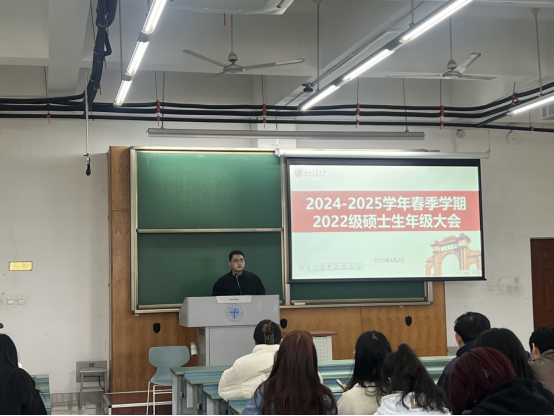 于4月2日 16:00在四号教学楼 X4357 教室召开2022级硕士生安全教育主题班会,本次班会由学院 2022 级研究生辅导员王威老师主持开展。