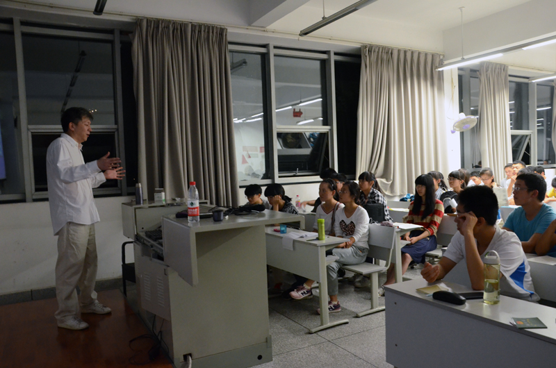 在与新生交流的过程中,林青教授为大家详细讲解了建筑学的专业特点以及建筑教与学的方式和方法,辅以自己对梦想,对大学,对青春的阐释,为同学们展现了一幅生动清晰的美好画面。林教授鼓励新生去做自己喜欢的事,去大胆地梦想,去发现身边的世界。他在最后说道:“希望同学们心中能够多一点阳光,这样你所看到的事物也会随之改变。”