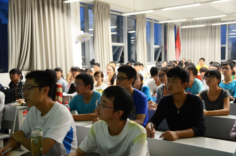 2013级全体新生进行了一场别开生面的演讲,。在暮色环绕的X8215多媒体教室内,现场气氛热烈,掌声雷动。