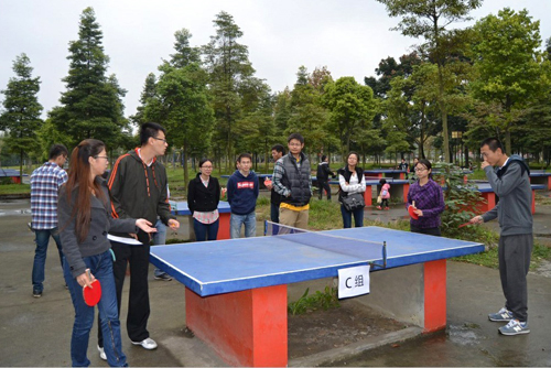 第二天的决赛中,虽天空下起了蒙蒙细雨,但球员们依然精神抖擞,涌动的热情丝毫没有减退。在经过激烈角逐后,何龙、聂希岷、任丁亮分别获得男单前三名,蒋俊、郭桂澜、冯蕾成分别获得女单前三名,由建筑学和风景园林专业组成的三支队伍分别获得混双前三名。赛后,双方比赛球员相互握手,并纷纷合影留念,气氛和谐融洽,充分展现了我院研究生拼搏奋进、昂扬向上的精神风貌。