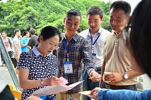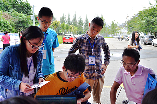 新生班主任向新生介绍报到流程