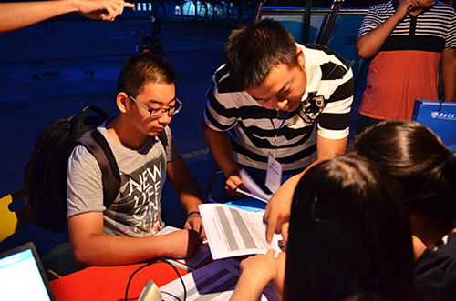 今天是迎新的第一天,早上六点天还没有亮,学院媒体事务中心记者就来到学院迎新点。此时各学生组织成员、迎新志愿者、各班班主任正陆续赶到迎新点进行准备工作。与此同时,第一位14级新生来到了报到处,并在班主任与志愿者的带领下顺利完成了报到流程。