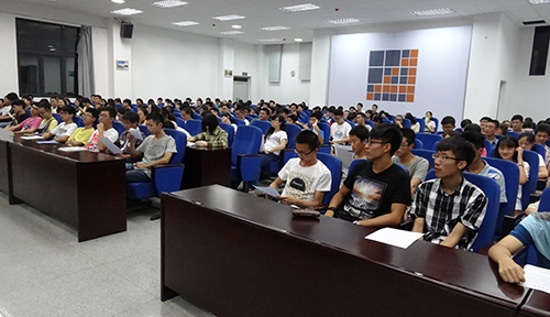 新生入学教育2014级新生校歌学习在建筑馆学术报告厅举行。学院邀请了艺传学院音乐系王增辉学长给予新生指导。