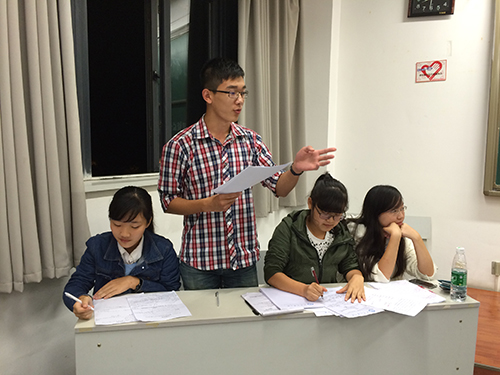 的评委,本次活动还有来自土木、数学等学院的嘉宾助阵。辩论赛前各组的赛前准备做得非常充分,来自大二大三的前辈们也为大一新生做了指导,现场气氛活跃。