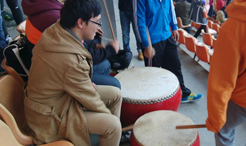 看台上的拉拉队在为参赛运动员们鸣鼓助威!