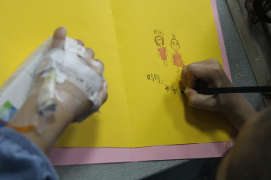 该日上午,志愿者带着贺卡和工具抵达省医院。志愿者们没有想到,孩子们都知道今天是母亲节,已经提前想好了对妈妈的感谢之词。拿到贺卡后,孩子们就开始描绘自己对妈妈的感激和爱,整个病房被浓浓的亲情包围着。