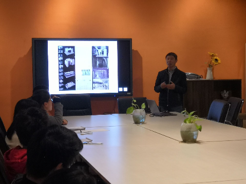 读书会上,朱老师首先介绍了由顾大庆教授领队的港中文大学建筑学教学团队,并简单概括了《建构,空间与设计》一书的主要内容。之后,朱老师从港中文大学本科生的课程体系出发,逐一分享了教学理念,教学内容及教学成果。朱老师更是通过他们学生的课程作业,以及教学现场的照片向我们展示了探索营造公共空间场所感的另一种方式。在之后的提问环节里,朱元友老师就同学们提出的问题做了耐心细致的回答。读书会结束后,朱老师和大家合影留念。