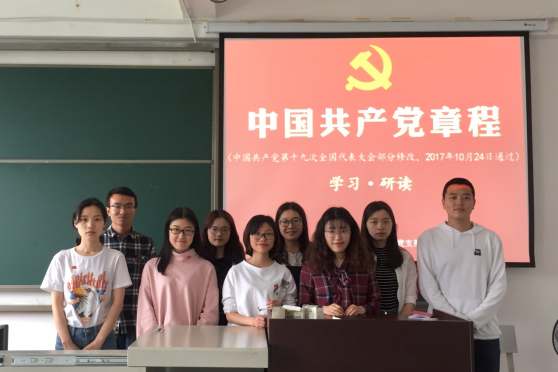 为传达和学习“中国共产党第十九次全国代表大会”会议精神与内容,加强专业与国家政策意识的培养,4月12日下午,研2017级城规党支部在X8539开展了中国共产党章程专题学习活动,本次活动由党支部书记向晓琴主持,支部10名党员参与。