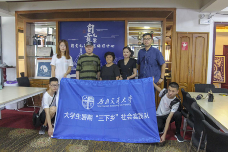 8月27日,队员与老师一行人于早上八点到达自贡扎染厂,来拜访自贡的扎染传承人——张晓平女士。张晓平女士是国家级非物质文化遗产自贡扎染技艺项目省级传承人。为人十分亲切。非常热情的和老师及队员握手,并带我们参观了她的工作室。