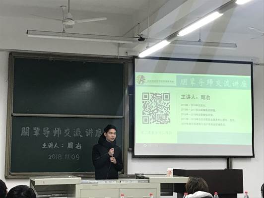 为创设更加良好的学风,帮助新生快速适应大学学习生活,提高自身的自控力,由共青团建筑与设计学院委员会主办,班级联合会承办,就业服务中心协办,于11月9日晚七点,在8321举办了第一期“朋辈导师交流讲座”。本次交流活动由院班联主任金磊主持,免研辅导员周冶主讲,我院各年级参加。