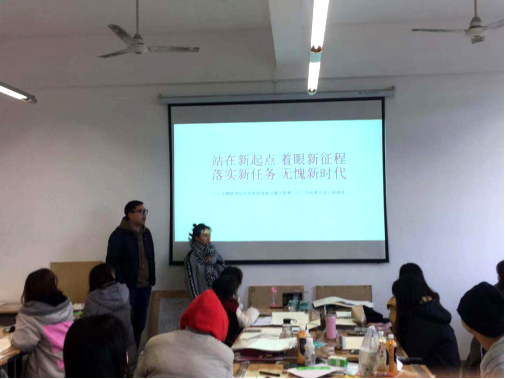 第二十二次代表大会上的讲话精神的专题团支部会议,学院团委副书记刘野,环境设计2017级2班团支部所有团员参会。