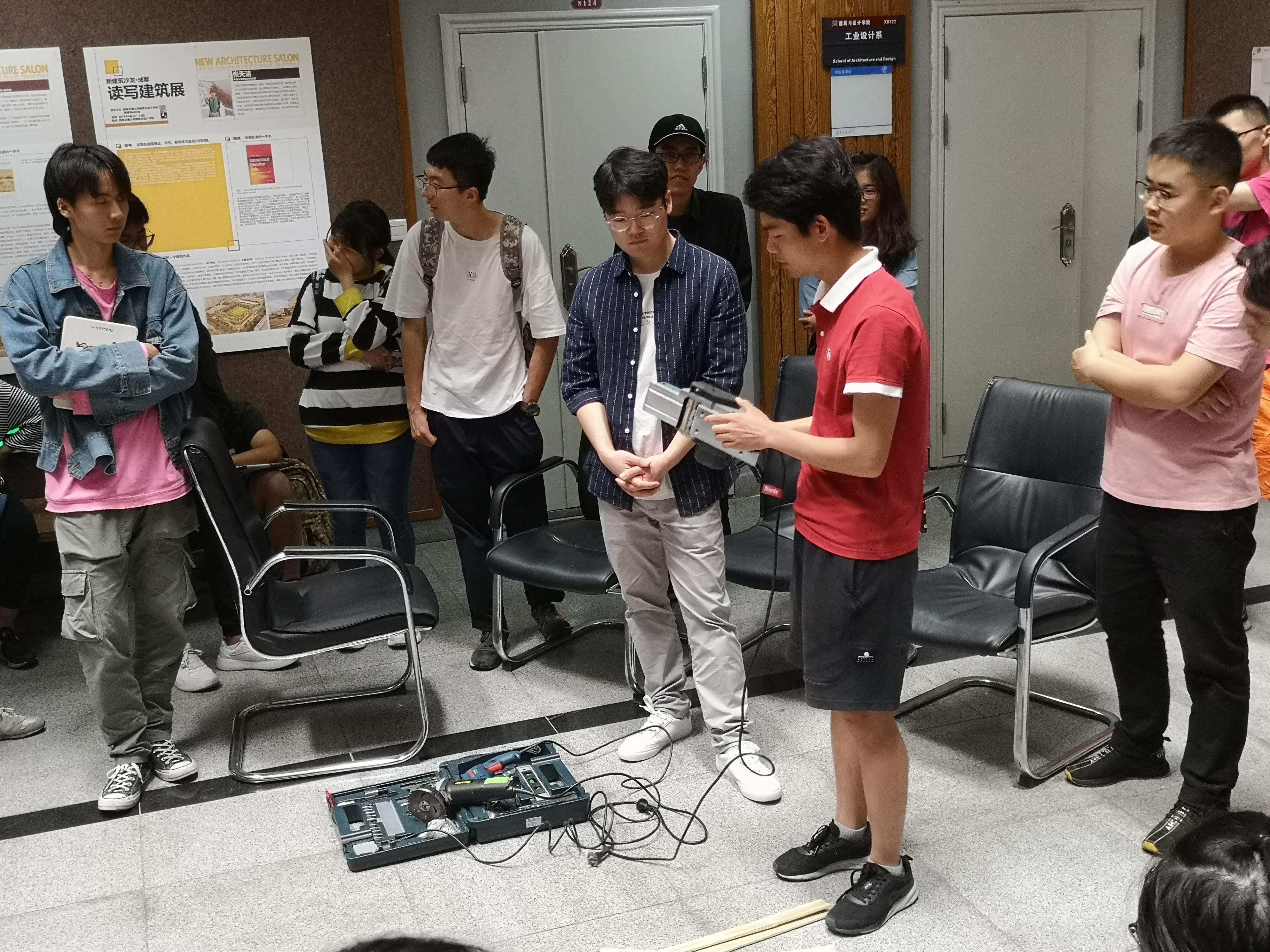 接着,各位学长分享了自己之前参与建造节的心得,以及部分建造工具使用技巧。周冶提醒同学们注意模型与实物在建造过程中的区别,强调建造过程中应当注重团队配合,合理分工。而王浩则借用真实案例告诫同学们提升安全意识。最后陈鹏、冉朋举亲自示范了建造工具的安装方法与使用技巧,并说明各种工具使用过程中的注意事项。提问环节,各位党员学长对同学们的问题也一一作出解答。