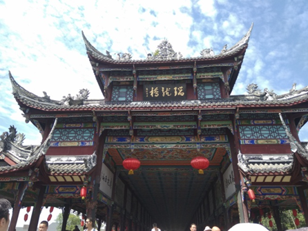 7月13日上午十点,实践队到达街子古镇入口“西川第一天”,之后经由川西旅游环线进入主景区,考察了唐求故里,明素亭,霁月亭,字库塔,黄老殿,瑞龙桥,井水街,八角井,古戏台,环山渠渡槽,了解了此地古建筑及其他构筑物的详细资料背景以及使用现状,拍摄了相关图片考察调研。了解到街子古镇距今已有一千多年历史,是被誉为“一瓢诗人”的唐代著名诗人唐求的故里,街道两旁房屋大体根据《清工部法则》营造,木结构穿逗梁架,单檐青瓦,民居布局,前店后院。以清代中、晚期建筑为主。反映出居民不张扬、不奢华、求实用的习俗,寓含淡泊、质朴的思想性格。走进镇区,看到和感受到的是自然、亲切,与山水融汇一起。这些都使我们实践队有种进入世外桃源的真切感受。