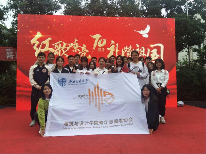 建筑与设计学院青年志愿者协会参加了由成都市郫筒街道中心村村委会承办的主题为《红歌嘹亮,礼赞祖国》的文艺汇演。