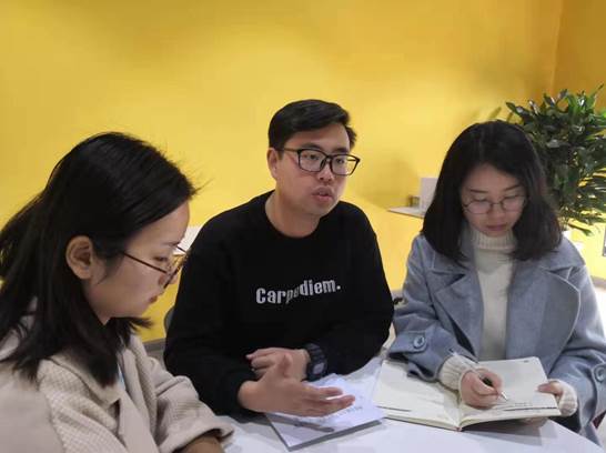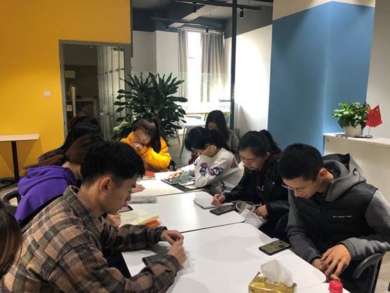 2019年11月14日中午1:30,建筑与设计学院本科联合党支部在学院图书馆前厅集体学习校党委书记王顺洪同志专题党课精神——以“蘑菇视频