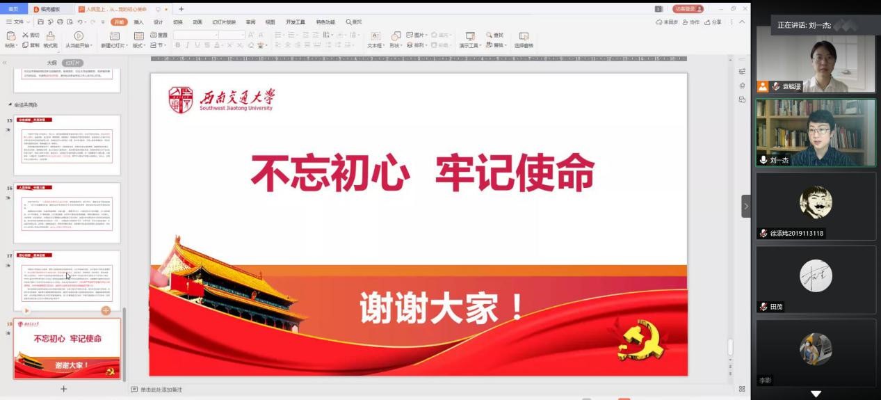 2020年7月15日上午10:30,建筑与设计学院党委举办了全体学生党员学习《人民至上,在疫情防控中看中国共产党的初心使命》专题微党课主题活动。主题活动由建筑与设计学院袁毓璟老师主持,建筑与设计学院党委刘一杰副书记主讲。