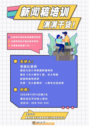 为提升我院学生新闻稿知识水平和写作能力,增强综合素养,充实同学们的课余生活,2020年11月13日晚19时,蘑菇视频