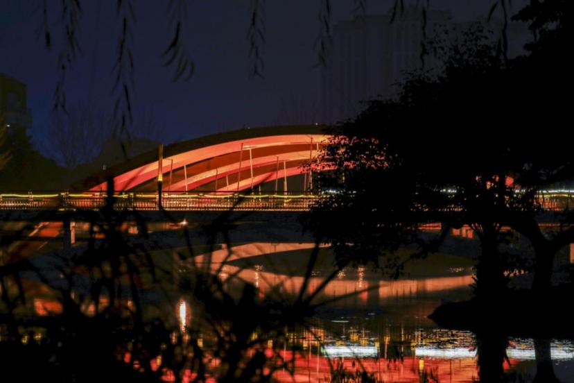 作品描述:晚归时分,虹桥相伴。
