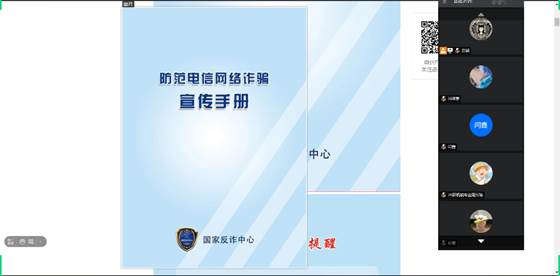 202164日,2020级硕士工业设计班线上开展了“致富十年功,诈骗一场空。”防范电信网络诈骗的主题班会。本次班会由班长苏润主持,共37名同学参加。本次班会共有两个流程。会议第一项,班长向同学们宣读《防范电信网络诈骗宣传手册》;会议第二项,班长播放了“远离两卡犯罪,共建平安校园”视频。