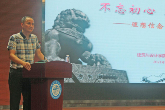 理想信念是精神支柱、力量之源,为加强新生理想信念教育,2021年9月7日晚,建筑与设计学院在犀浦校区一食堂三楼大学生活动中心顺利开展新生入学教育之“不忘初心 不负韶华”理想信念与家国情怀教育专题教育讲座。本次讲座邀请到建筑与设计学院党委书记吴晓雄担任主讲人,2021级全体本科新生参与讲座。