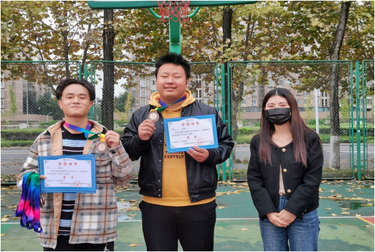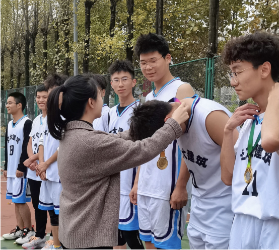比赛结束,全体球员齐聚闭幕式,建筑与设计学院辅导员高晗雨老师,钱秋凡老师,李国仪老师出席了此次闭幕式。男篮,女篮冠亚季军的队员轮流上前领奖并合影。