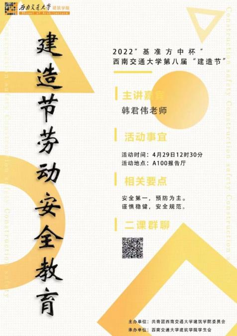 第八届“建造节”劳动安全教育培训会在学院A100报告厅顺利举行。