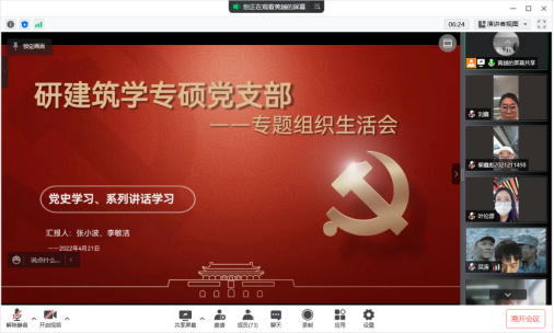 研建筑学专硕党支部于腾讯会议召开“党史学习与习近平总书记系列重要讲话学习”主题生活会,支部党员及入党积极分子参加了本次会议,会议由黄越同志主持。