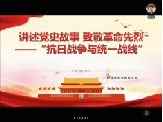 会议第一项,张小波同志向全体与会人员详细介绍了抗日战争时期的党史故事。张小波同志通过演示文稿及视频分享的形式,从六个方面向与会人员进行介绍。总的来说,伟大的抗战精神,是中国人民弥足珍贵的精神财富,是实现中华民族伟大复兴的强大精神动力。中国人民向世界展示了天下兴亡、匹夫有责的爱国情怀,视死如归、宁死不屈的民族气节,不畏强暴、血战到底的英雄气概,百折不挠的必胜信念,激发着广大学子之爱国热情!