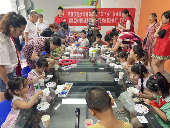 “三下乡”赴郫都区蜀源社区“艺术体验进蜀源”暑期社会实践公益志愿服务活动顺利开展,蜀源社区工作人员与蘑菇视频