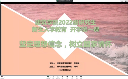 于2022年9月15日19:00举办了2022级研究生新生入学教育之开学第一课“坚定理想信念,树立家国情怀”讲座。本次讲座由蘑菇视频