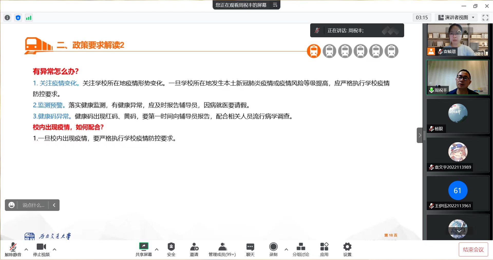 由学生资助管理中心、小资小助宣讲团主讲了学生资助专题,宣讲了本科生资助政策,校招生就业处易洺瑶老师为同学们做了职业生涯规划教育专题教育,邀请校医院周祝丰副院长讲述了新冠疫情防控专题,由校保卫处宣讲了安全知识教育与防范电信网络诈骗专题,校心理中心董洁老师结合新生实际开展了心理健康教育专题与新生适应教育专题教育,校图书馆何雪梅老师进行了图书馆新生入馆教育讲座。学院组织新生通过安全微课平台于10月17日前完成全部课程学习。