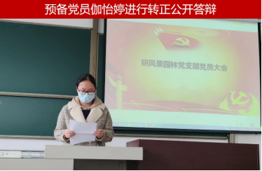 会议伊始,研风景园林党支部召开学生党员大会,根据支部发展党员工作计划,对关于3名发展对象转为预备党员、1名预备党员同志能否按期转正分别进行讨论和表决。发展对象孙悦、秦旌瀚、张可就对党认识、入党动机、思想理论学习的情况、以及阐述自己日常工作、科技竞赛、社会实践、志愿服务等方面中如何践行党员先锋模范作用,最后表明自己坚定不移入党的决心和为人民服务的坚定信念。