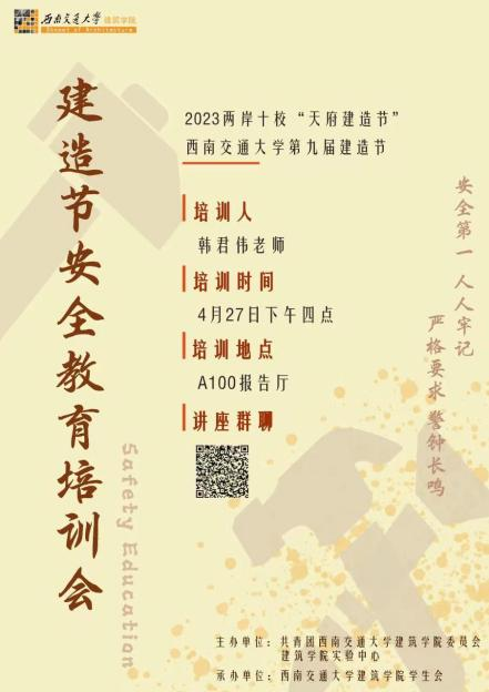 第九届“建造节”于4月29号即将正式开展。学生安全问题在建造施工时是重中之重。