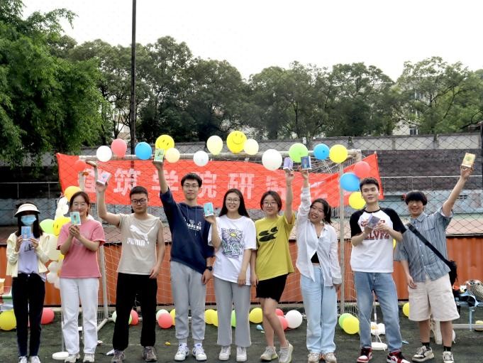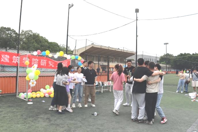 游戏环节主要是通过不同的活动体验增强同学们之间的交流合作,让同学们从游戏中感受到快乐与他人的力量。“玫瑰花开”游戏中,要求同学们按口令成群抱在一起,需要高灵敏度的游戏让同学们卸下心理包袱与防备,更加专注于享受当下;“踩破烦恼”通过友谊赛两两PK的形式,调动大家释放压力的主动性,踩破的是气球,“消灭”的是焦虑和烦恼;“齐心协力站起来”需要各组同学手挽手在互相帮助之下站起来,一定程度上加强了组员的相互协作和相互信任,促进组内沟通交流,增强了团队的凝聚力。游戏结束后,工作人员为积分更高的小组颁发奖品并合影留念。活动的最后,主持人代表研究生会全体成员表达了对每位同学的美好祝愿。
