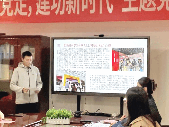 接着,中共正式党员范金林同志分享了参与烈士陵园活动的亲身经历和心得。他倾情讲述了为烈士献花、重温入党誓词、参观革命烈士纪念馆时的所见所闻、思考和感受,表达了对先烈的崇敬之情,并提出各位同学作为青年党员要倍加珍惜革命先烈用鲜血为我们争取而来的幸福生活,不忘来时路,发扬革命精神,为党的事业贡献自己的力量。