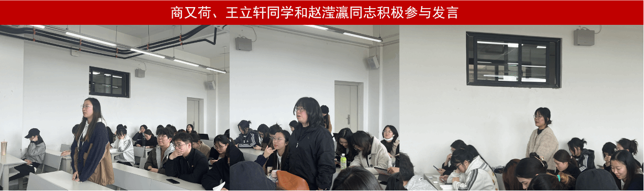 学习过程中,支部党员赵滢瀛同志及入党积极分子商又荷、王立轩同学积极参与发言,阅读学习内容并分享心得感受。她们充分认识到党史学习教育的重要性,通过学习党史可以帮助党员和人民群众深刻理解党的奋斗历程,继承和发扬党的光荣传统和革命精神,增强“四个自信”;党史学习教育还有助于党员不断提高党性修养,牢记党的宗旨,坚持党的群众路线,保持党的先进性和纯洁性。