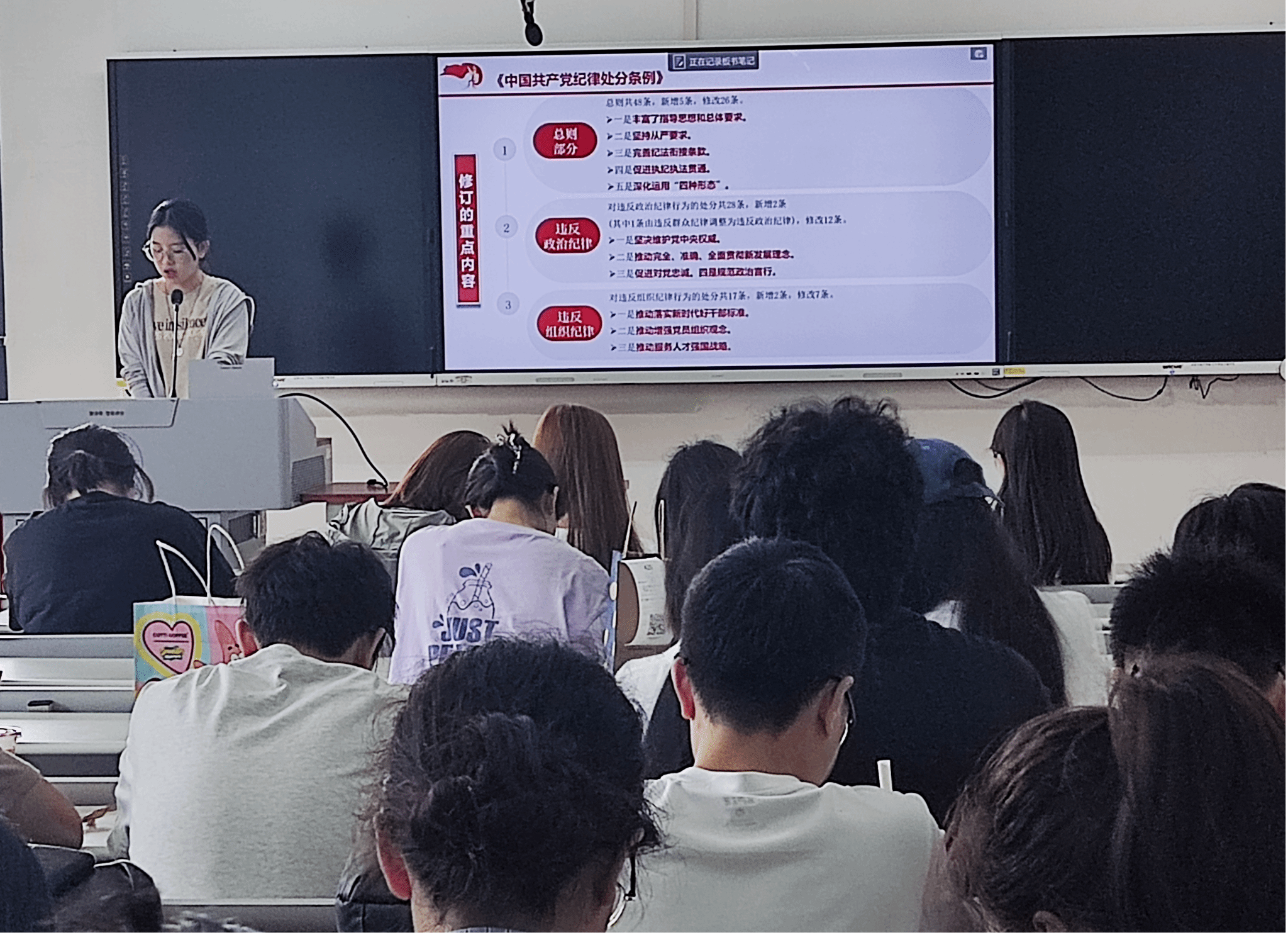 本次党课内容分为重要论述阐释和条例解析两个部分,分别由研城乡规划党支部书记关心茹同志和研城乡规划第二党支部书记侯胜兰同志带领学习。首先,关心茹同志以习近平总书记关于全面加强党的纪律建设的重要论述为开篇,深入阐述了加强党的纪律建设的必要性。她强调,党的纪律是党的生命线,是党的各级组织和全体党员必须遵守的行为准则。随后,为进一步加深支部同志们对党纪学习教育的理解和认识,侯胜兰同志针对《中国共产党纪律处分条例》的修订内容和“六项纪律”的具体要求进行了重点解读,并结合实际案例,深入剖析了违反党规党纪的严重后果,警示支部同志们要时刻坚守党的纪律底线。党课最后,支部同志们表示,通过本次学习,他们深刻认识到了党的纪律的重要性和严肃性,在今后的学习和工作中将严格遵守党规党纪,真正做到知纪于心,守纪于行。